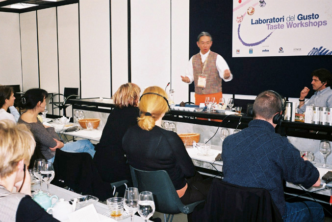 Conducting a tasting session in Slow Food 2004 after being head of a delegation for Chinese traditional oolong producers during Tera Madre 2004 in Turin. Photo taken after a workshop I presented on how smart marketing can improve the business structure of traditional farm commodities.