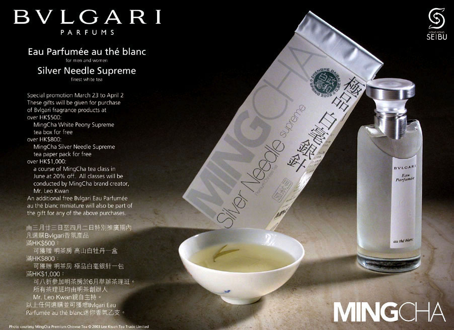 - Joint promotion poster with Bvlgari Parfums 2004, creative and art directed by myself. The image and position of the tea brand has become very different since my departure in late 2006.