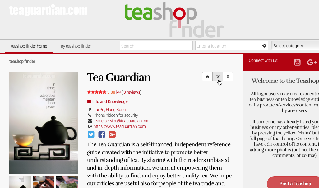 About this Site 2016.02.11 by Tea Guardian · Published 2016.02.11 Adding Photos in Teashop Finder “Official” Photos At Teashop Finder, if a listing is posted by you or already claimed...