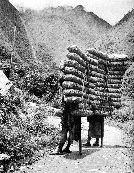 By the time the tea changed hands for horses or mules, or other provisions, the leaves would have had quite a lot of induced post-processing changes, even they had not been darkened before the journey began.