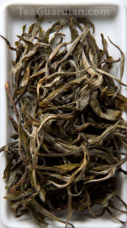 The loose leaves, however, do not go through that. They are somewhat like by-products of the whole shengcha puer trade, though they are no lesser tea than the more expensively compressed and wrapped counterparts. The degree of dryness varies from batch to batch dependent on the subjective decision of the tea master at the leaf collection point where most of the maocha processing takes place. Usually they are about 10%, i.e. dry and quite brittle to the grasp.