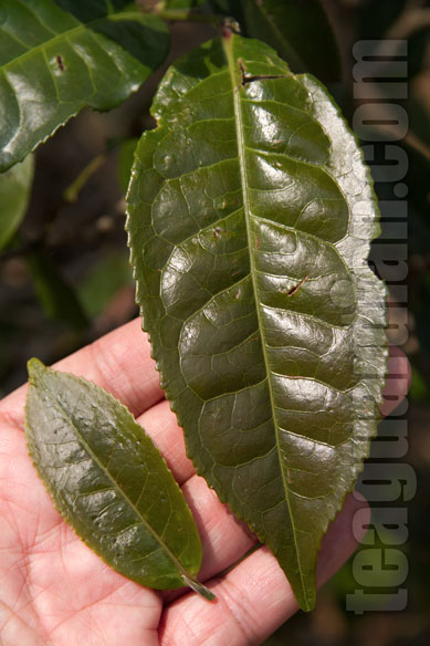One reason for the complexity of the tea taste generally in Yunnan is its huge diversity of tea cultivars, the taxonomy of which has yet to be developed by specialists. This is one special red leaf cultivar in the Bulang area.