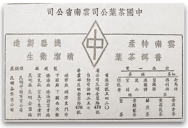 Product list, Yunnan China Tea Company, circa 1942 ~ 45