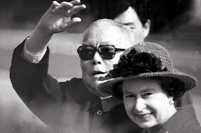 Queen Elizabeth II photographed with Premier Li Xian Nian when she visited China for the first time in 1986
