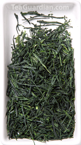 The warm and delicious aroma of a really fine gyokuro that is a first flush can still be traced in a freshly produced fine sencha or kabuse-cha, although much weaker. A leaf of fine gyokuro is much more delicately rolled than the usually flattened kabuse-cha. The former is usually from a first flush for more intense aroma and taste and therefore, slightly lighter, but more intensely green. However, they are from similar bushes, similar growing environment and nearly identical production process, other than the fine tuning of a few parameters. To me, that means a same variety of tea, only different quality levels.(6)