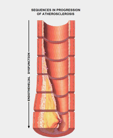 A diagrammatic drawing showing how the inner lining of the blood vessel becomes dysfunctional due to accumulation of oxidized blood lipids. Atherosclerosis causes major diseases in our circulatory system, such as strokes and heart attack. Tea drinking helps to decrease the amount of such lipids.