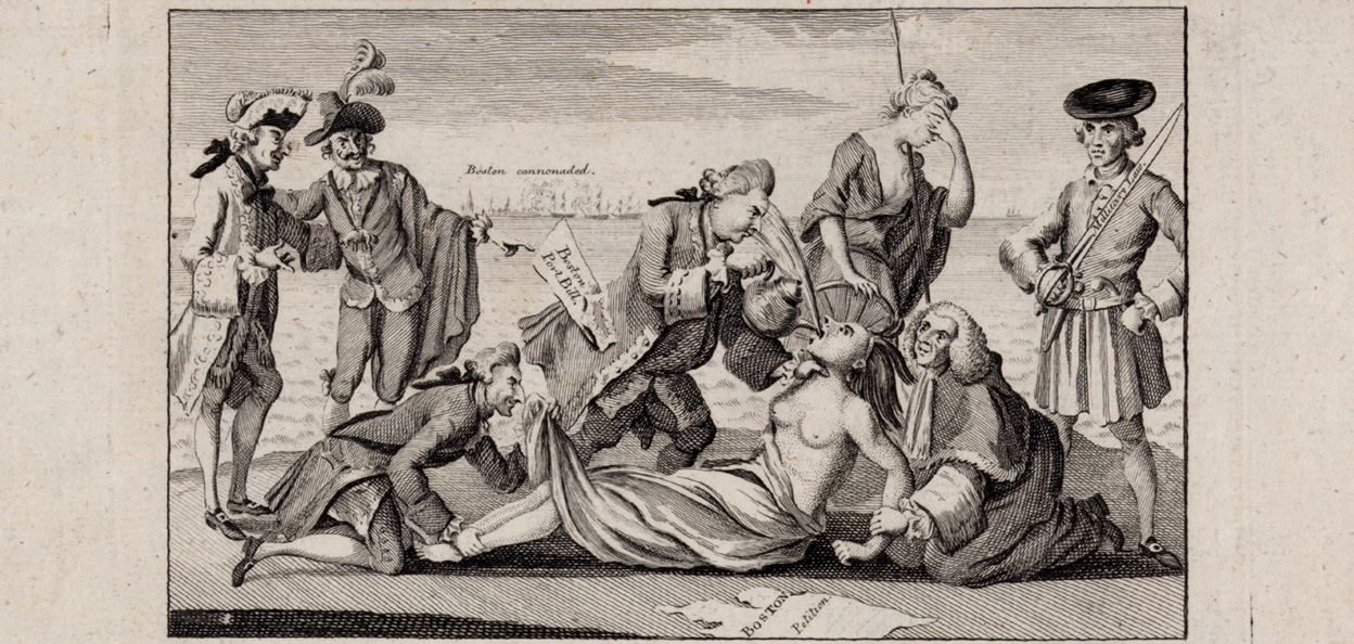 Boston Port Bill, artist unknown, engraving, April 1774. A satire also known as “The Able Doctor, or America Swallowing the Bitter Draught” first published in London depicting America as the native American woman being forced down with tea (the outrageous tea tax and others) by the colonists. The carton was later copied and published in the Royal American Magazine in the colony. Well, we no longer face the violence of the colonists, but the brain wash and near cartel by giant corporations in effect force upon us what we consume. We have choices outside of that, just that we have to know we do.