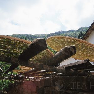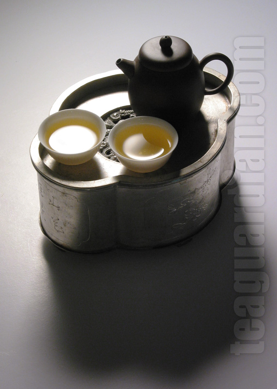 When I was still quite young and enjoyed traveling to unknown places, I was once lost in a small town near Shantou (a city in the northeastern seacoast in Guangdong province) looking for a way to Chaozhou, the city near which Phoenix oolongs are made. Taxis were not in existence in suburban China then and there were no real highways from nearby cities yet. I was looking for a certain bus terminal and amidst the crowd in front of what appeared to be the entrance gate, in the middle of a small yard, filled with travelers hurrying around, mindless of the dirt and muddy puddles on the ground, sat an old man on a rattan chair that was so worn and broken that it seemed to have been forgotten in the garbage disposal for a few years. He was there absolutely in his own space, preparing tea with water from a small blackened kettle on a charcoal stove made from used tin. His tea table was a rectangular old wooden stool. On it sat his small lead tea tray, holding this 60 ml Yixing pot and three teacups that should have been white many years ago. These tiny cups were about the size of half a walnut shell. He was chatting with two men sipping tea standing by, in their local dialect, seemingly having a good time.