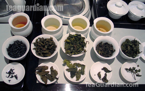 A student’s effort in one of the tea class: the infused leaves and infusion colours of various Minnan oolongs