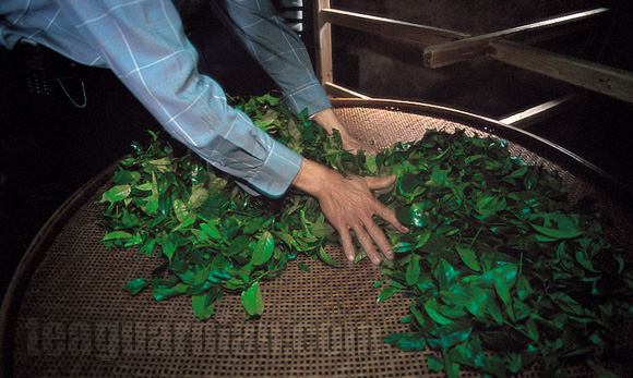 Leaves are being lightly pushed together in a gentle rythem in the beginning of the zao qing process