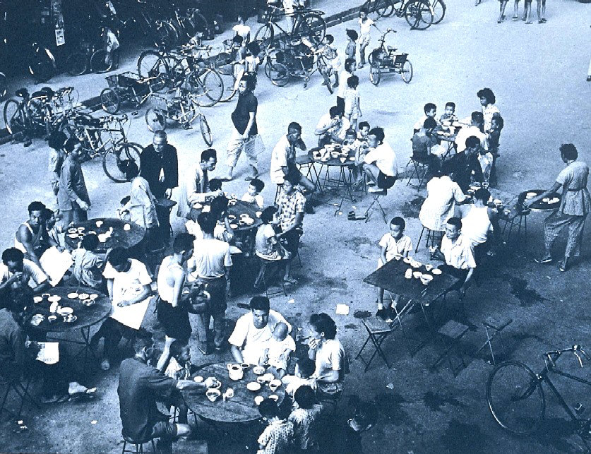 Open air yumcha “daipaidong” in the 1950’s. Such eateries played major role in the social fabric for the lower class in those days. Since a majority were refugees running away from communist rule, most people at that time were not rich. Notice the very dark colour tea in their tea cups.