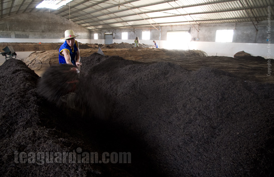 The process of “trenching” during post fermentation in Puer production to let the tealeaves gradually dehydrate naturally