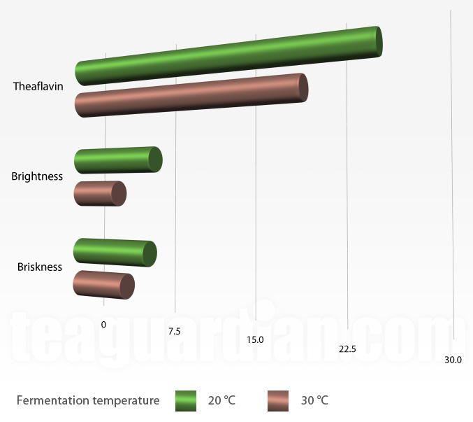 In a study done in Kenya (1), where tea plantation was introduced in the 1920s by the British for black tea to satisfy the colonists’ home empire, scientists found that the amount catechins decreases as do theaflavins, the major health flavonoids in black tea, as the temperature during fermentation increases from 20°C to 30°C. As mentioned earlier, temperature is raised for black tea fermentation to hasten the process, most of the time higher than 30 in major commercial productions.