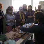 - The tealeaves are transferred into a cylindrical cotton bag for rolling into a “cake” form
